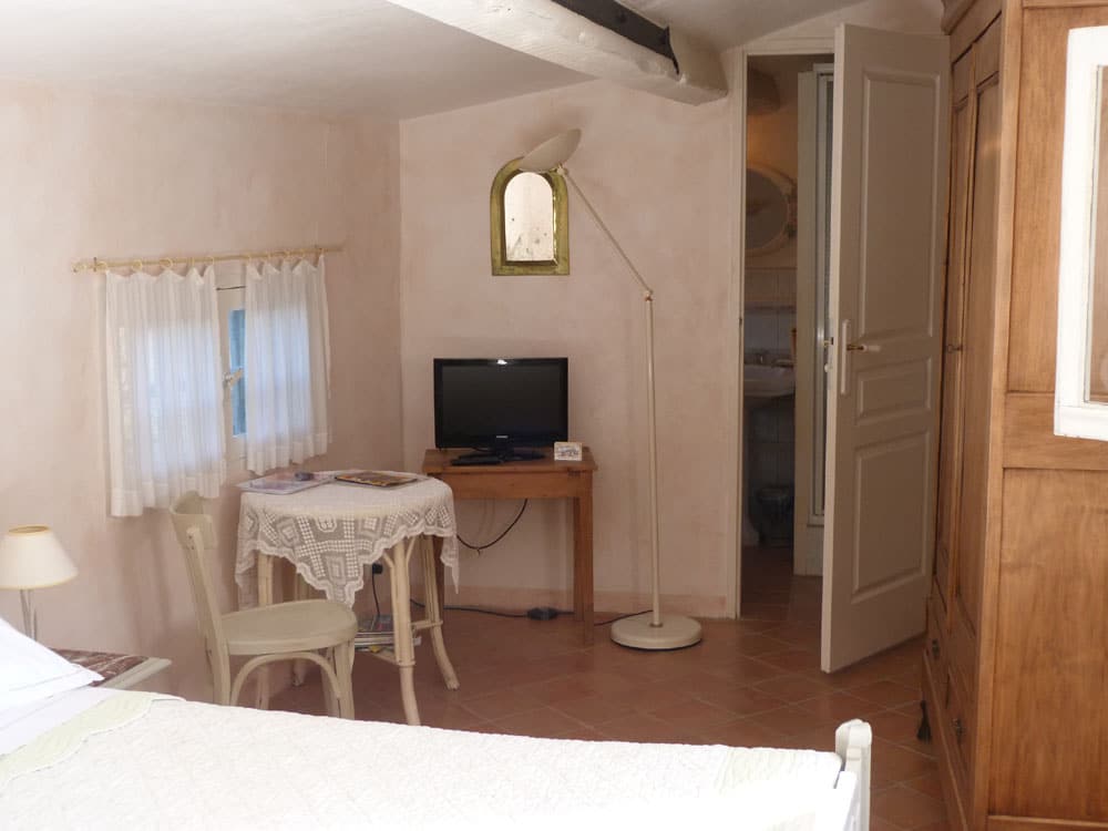 Chambre pour 2 personnes, avec accès extérieur, télévision, salle d’eau avec douche, WC et Terrasse privée.